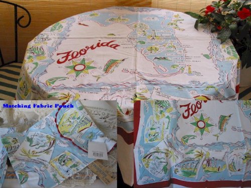 Vintage Retro Florida Souvenir State Map Tablecloth Feature